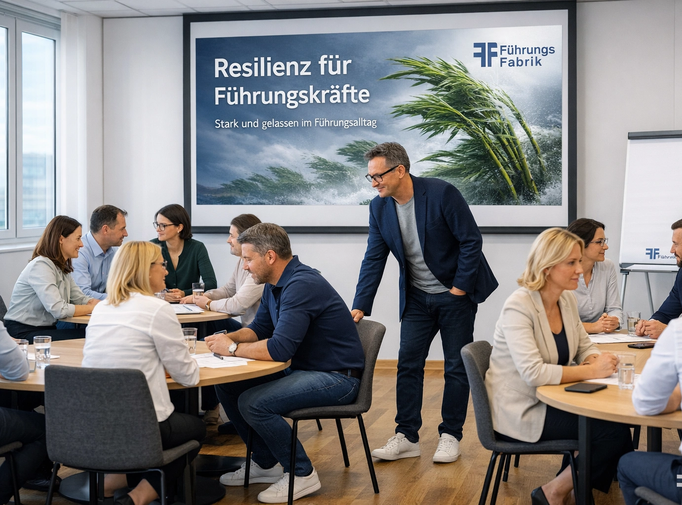 Die FÜHRUNGSFABRIK® stärkt Führungskräfte im Mittelstand durch ein strukturiertes Trainings- und Coachingkonzept. Ein Grundkurs, vertiefende Trainings, individuelles Einzelcoaching sowie ein exklusiver Elitezirkel greifen ineinander und zielen auf nachhaltige Verhaltensänderung. Alle Inhalte sind praxisnah und auf aktuelle Herausforderungen im Führungsalltag ausgerichtet.